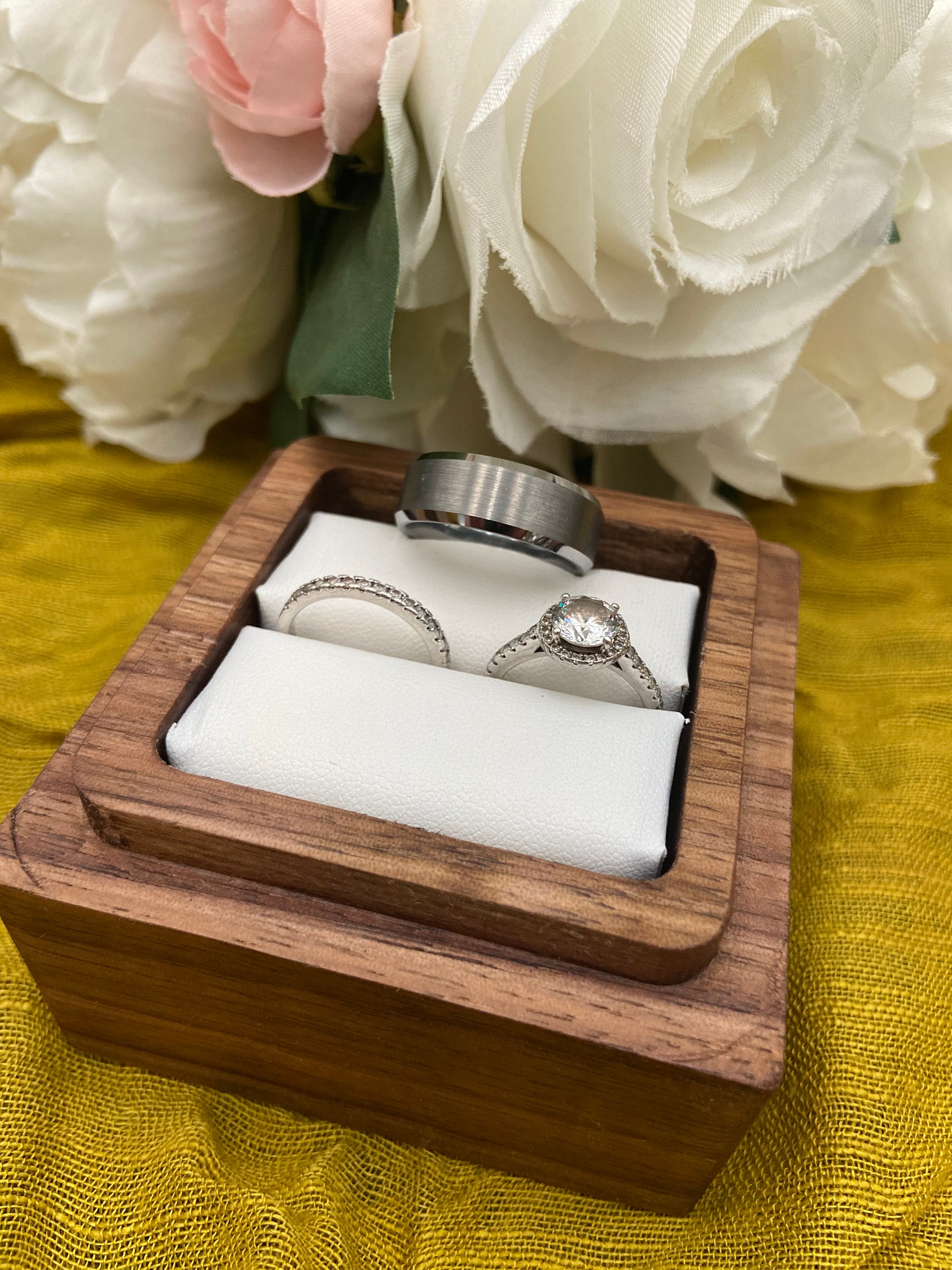 Each box is designed to hold life’s most meaningful pieces — engagement rings, wedding bands, or heirloom jewelry — with precision and heart. The interior is lined with soft, premium insert material to keep your rings secure, while the exterior can be custom engraved with initials, names, or a meaningful quote.