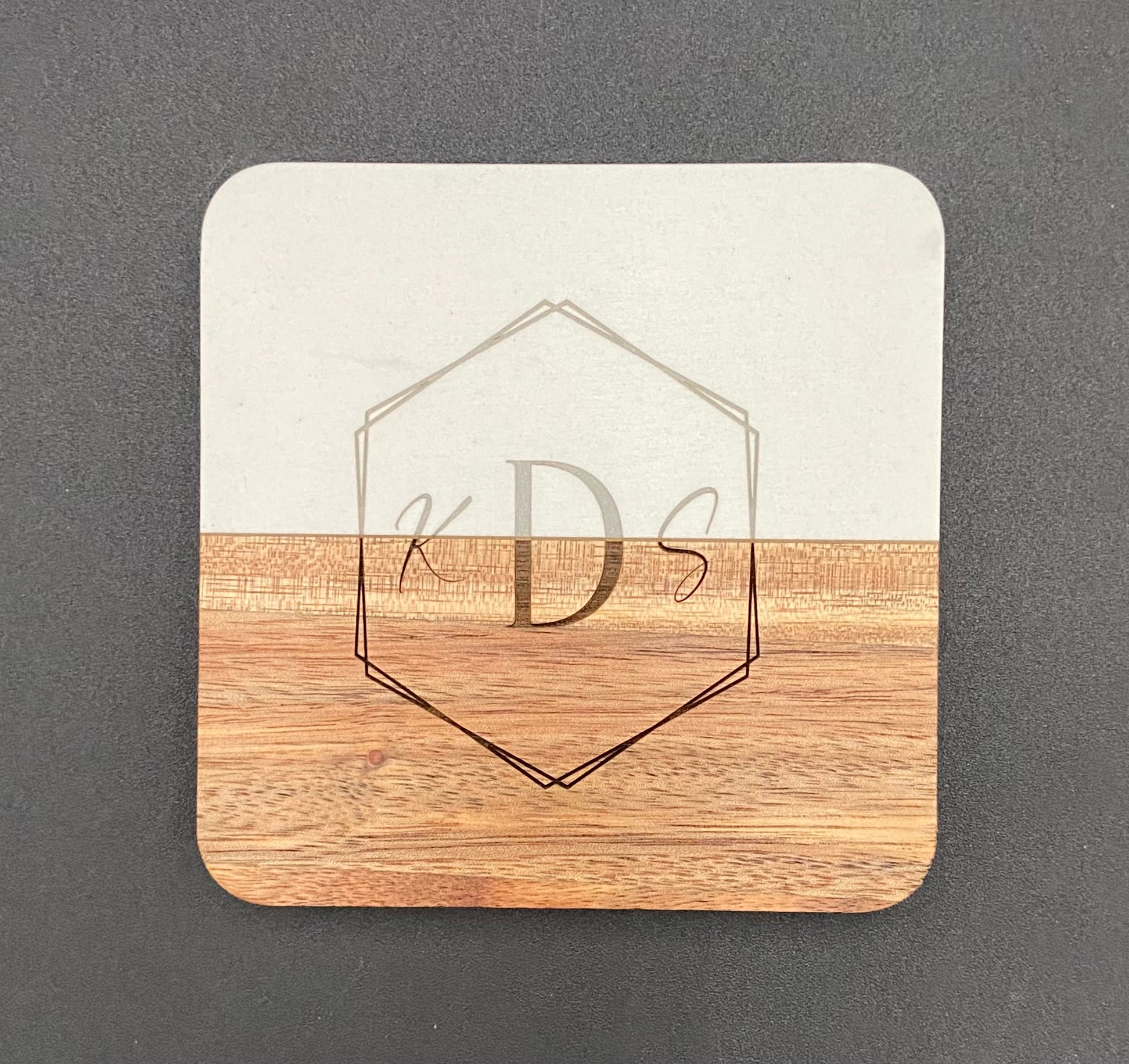 4” Square Wood/Marble Coasters – A refined blend of natural wood and marble, perfect for modern coastal homes.