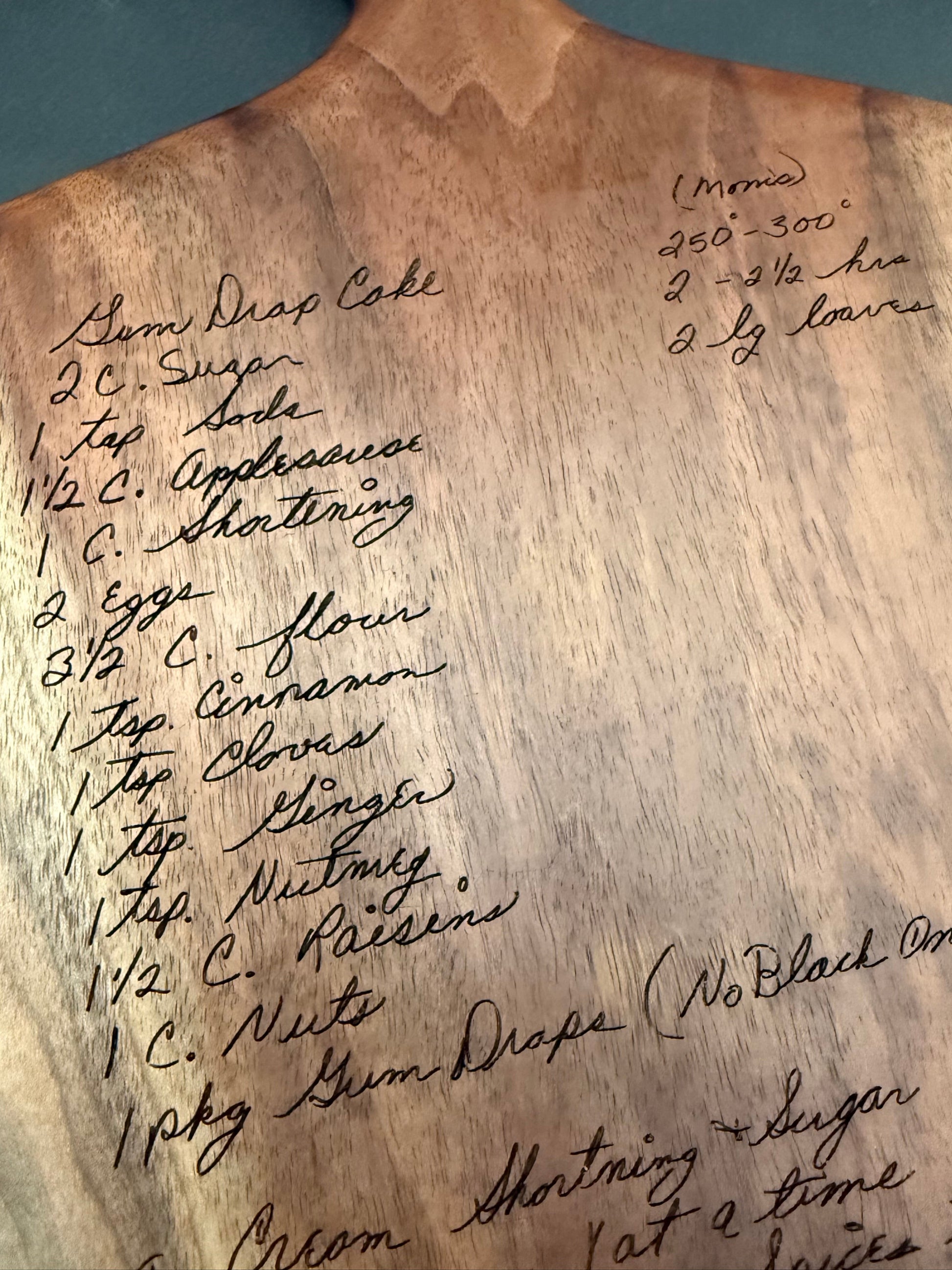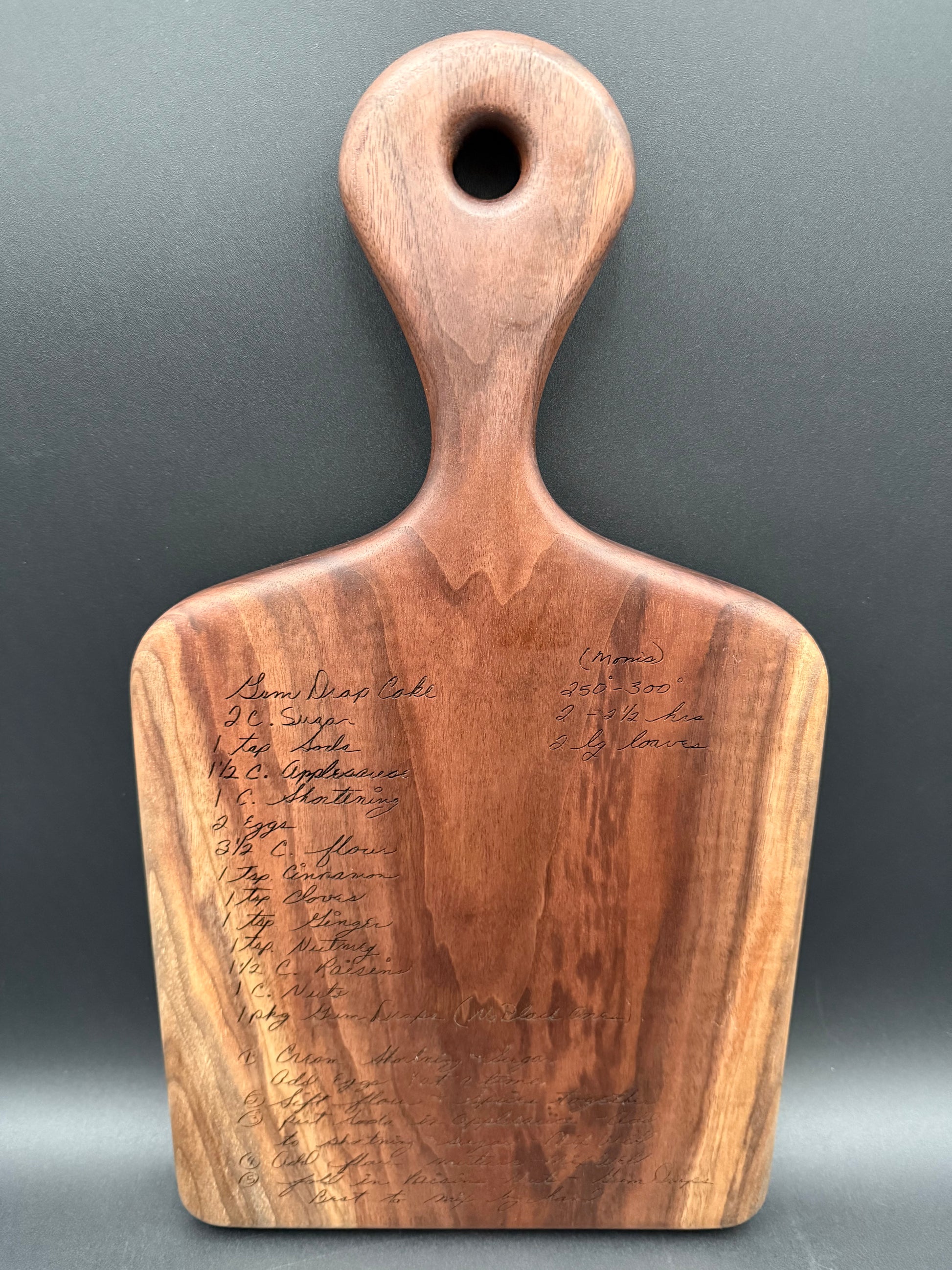Handcrafted Black Walnut Cutting Board with Engraved Recipe