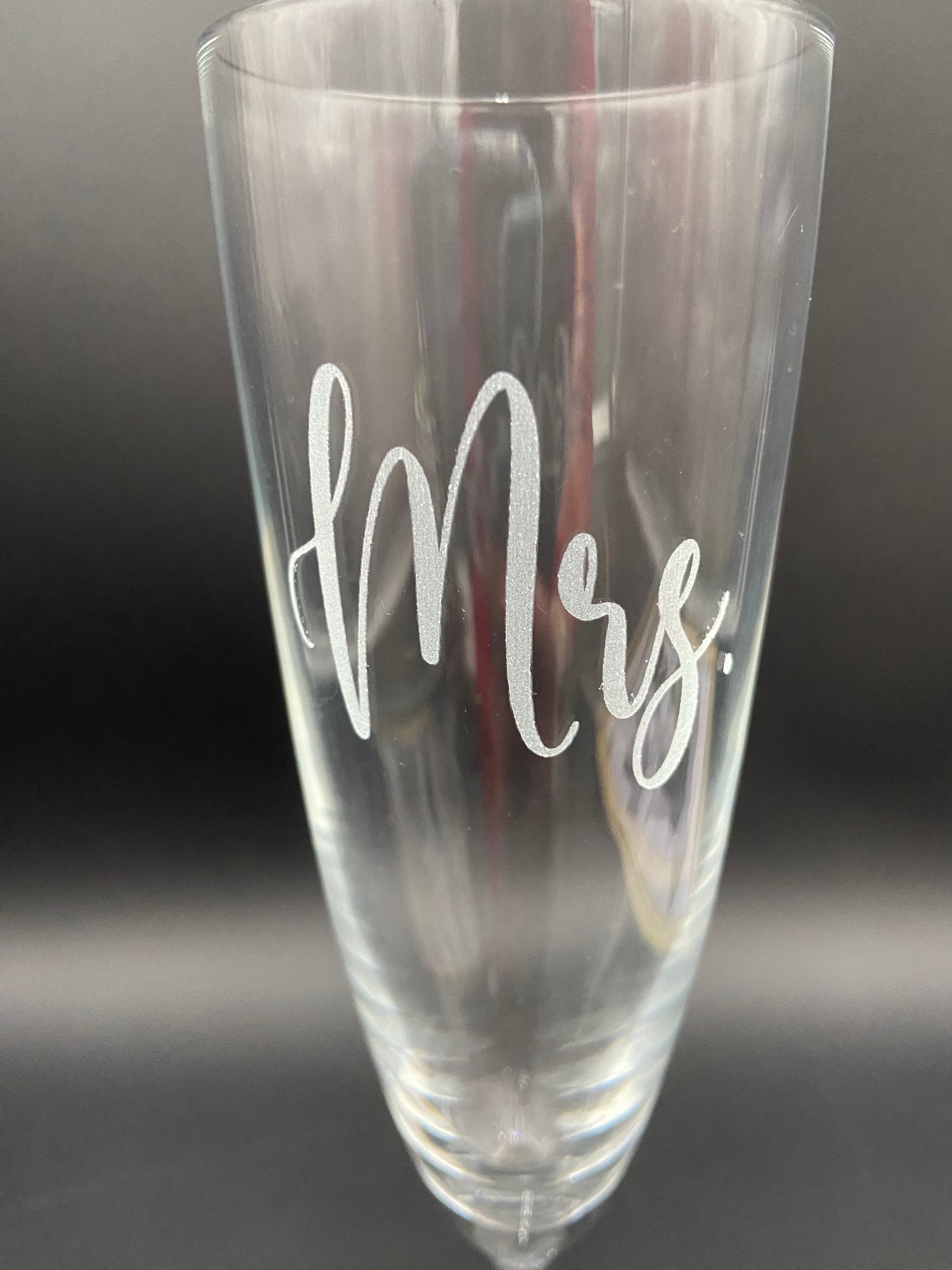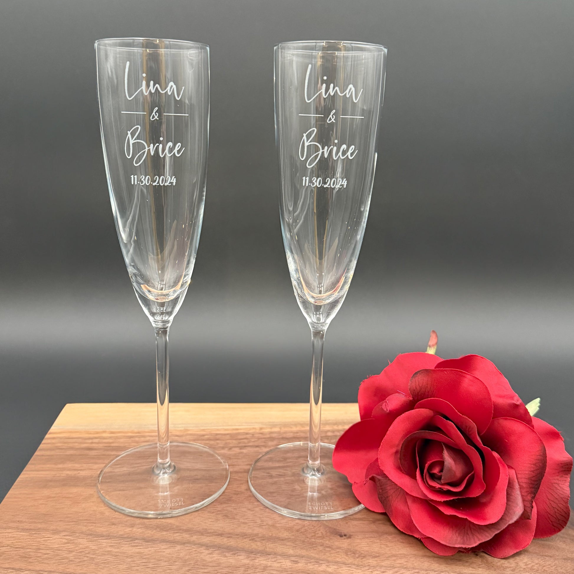 High quality Schott Zwiesel craft 8-ounce champagne flutes, custom etched with the design or text of your choice.