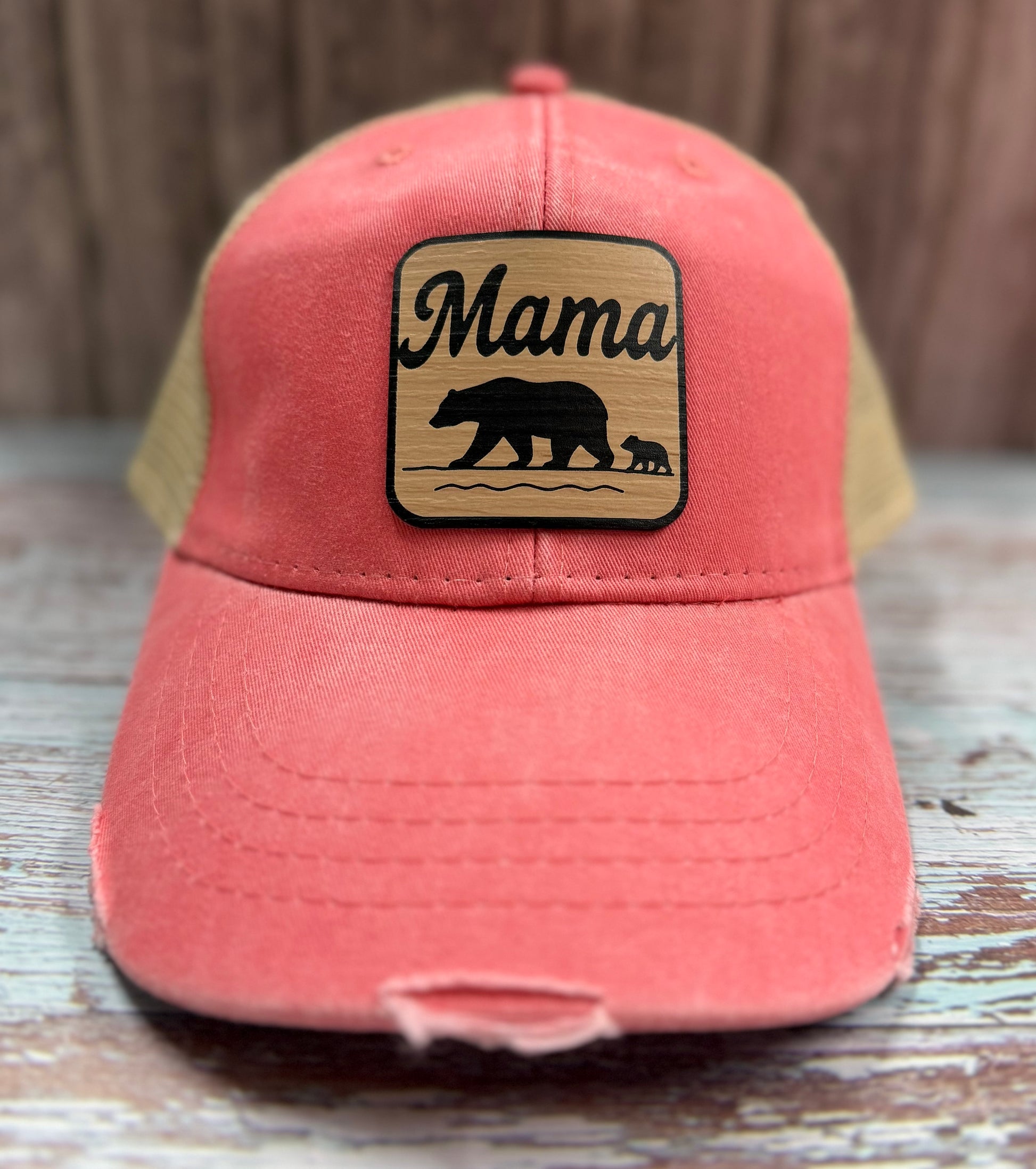 Whether you're chasing littles at the beach or running errands with coffee in hand, our Mama Bear Hat is made for the mamas who do it all - with style. Featuring an engraved acrylic patch in your choice of Light Driftwood, Dark Driftwood, or Bold Pink, this hat is both a statement piece and a staple.