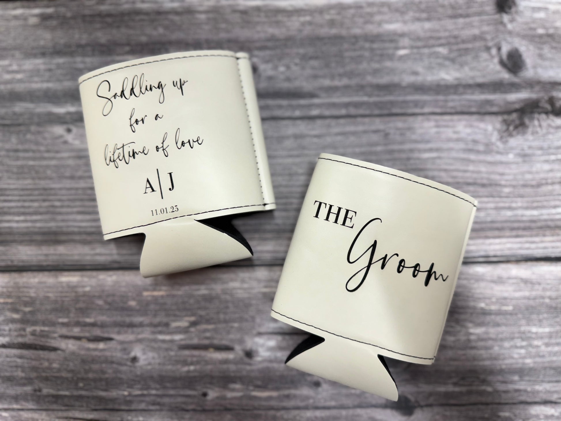 Keep your favorite beverage perfectly chilled in style with our premium 12oz leatherette can cooler. Designed for standard cans, this high-quality sleeve combines functionality with a touch of elegance, making it perfect for weddings, parties, or everyday celebrations.